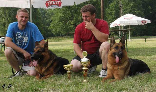Obydwie suki pokazały bardzo dobre posłuszeństwo i świetną obronę. Sędzia SV powiedział że zrobiły korung w pięknym przekonywującym stylu a publiczność nagrodziła pracę TAJGI i ZINY gromkimi brawami. TAJGA i ZINA otrzymały Kkl1 Lebenszeit TSB ausgepragt: LLasst ab.