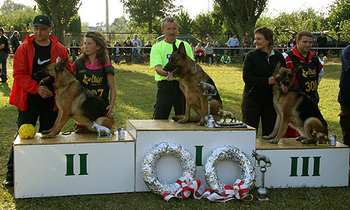 Czas najwyższy napisać o występie i lokatach uzyskanych przez nasze suki, trochę się pochwalimy bo uważamy, że mamy czym. Wystawialiśmy 3 suki, które pochodzą z naszej hodowli / De-Bes /. Matkami tych suk też są suki pochodzące z naszej hodowli które posiadają niemieckie prześwietlenia DNA wyszkolenia IPO i Kerungi.